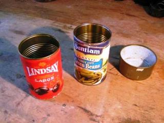 Step by step instructions with images, on how to build a small camp stove with chimney, using can food cans.